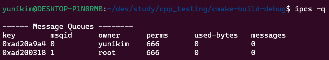 ipcs 명령으로 message queue를 확인해 볼 수 있다.