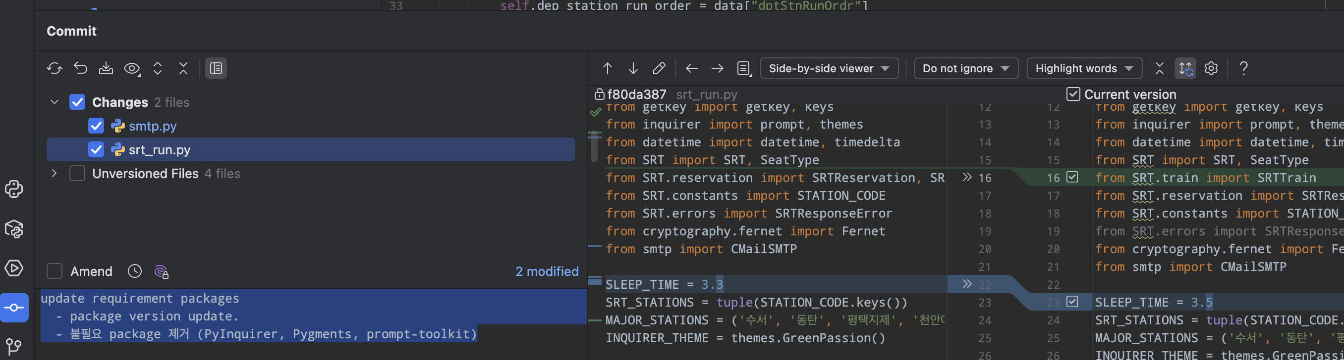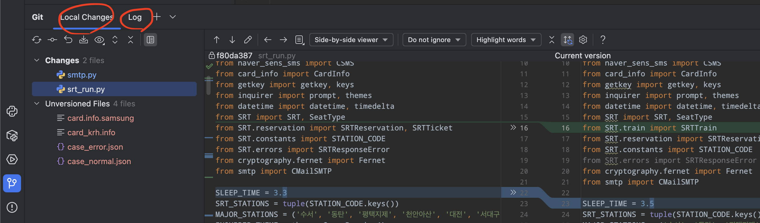 나는 'git' 창에서 commit 내역과 현재 수정된 내용들을 한번에 보는 local change를 세팅해서 함께 띄워놓고 보는데, 얼마전 pycharm을 업데이트 하니 commit 창과 git 창이 분리되어 상당히 불편하고 거슬리게 바뀌어버렸다.