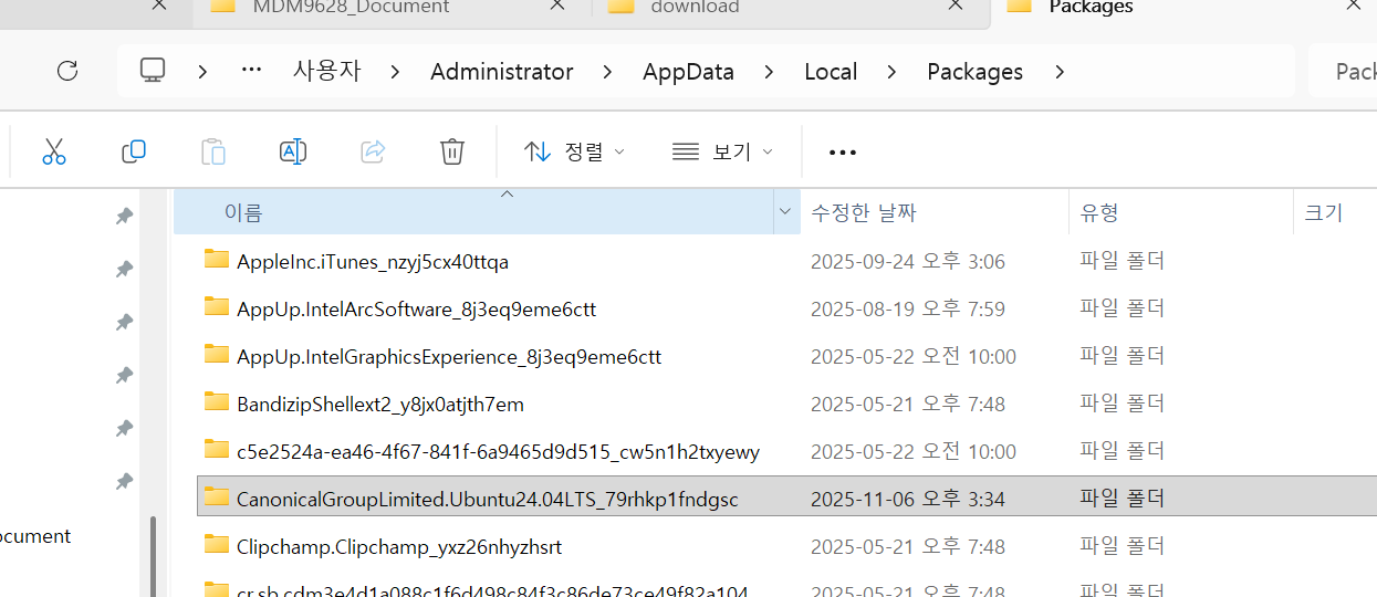 내 경우엔 위와 같이 C:\Users\Administrator\AppData\Local\Packages 아래에 기본 설치되었다.
